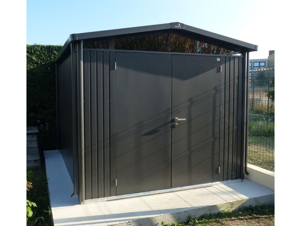 Domek na nářadí Biohort PANORAMA P3, tmavě šedý, dvoukřídlé dveře