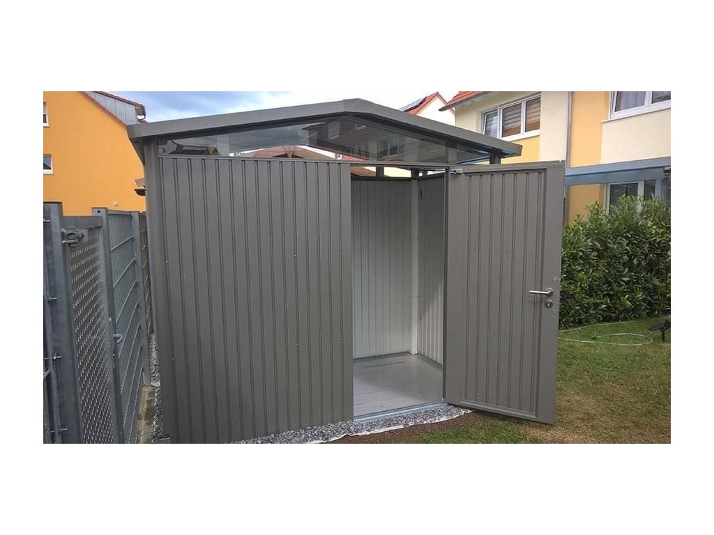 Domek na nářadí Biohort PANORAMA P4, šedý křemen, jednokřídlé dveře