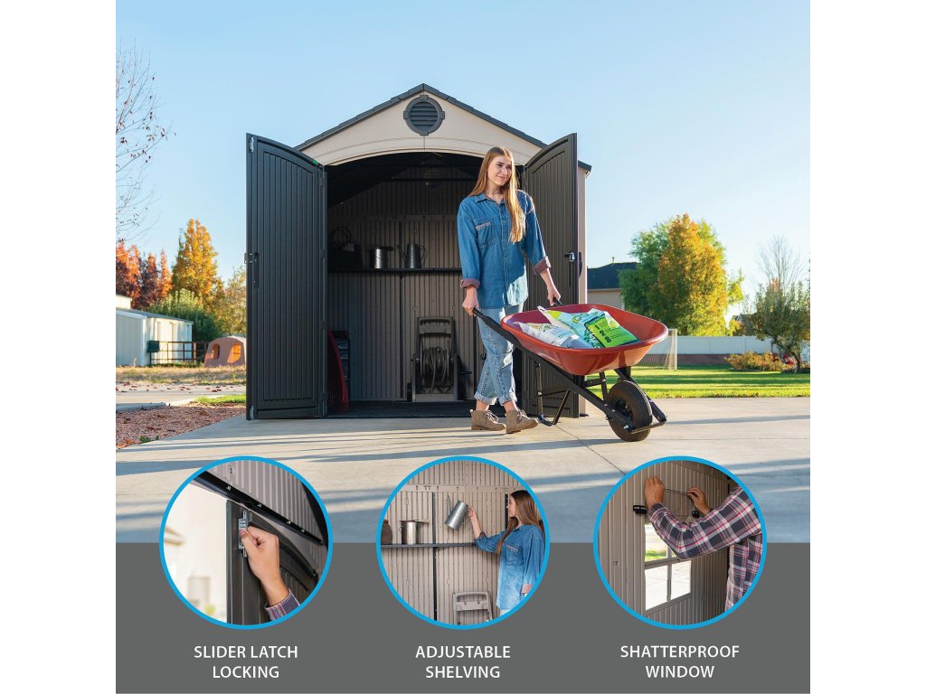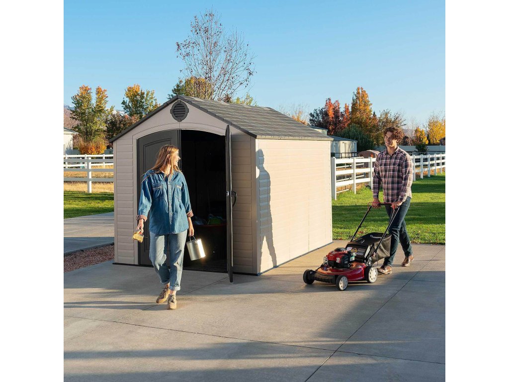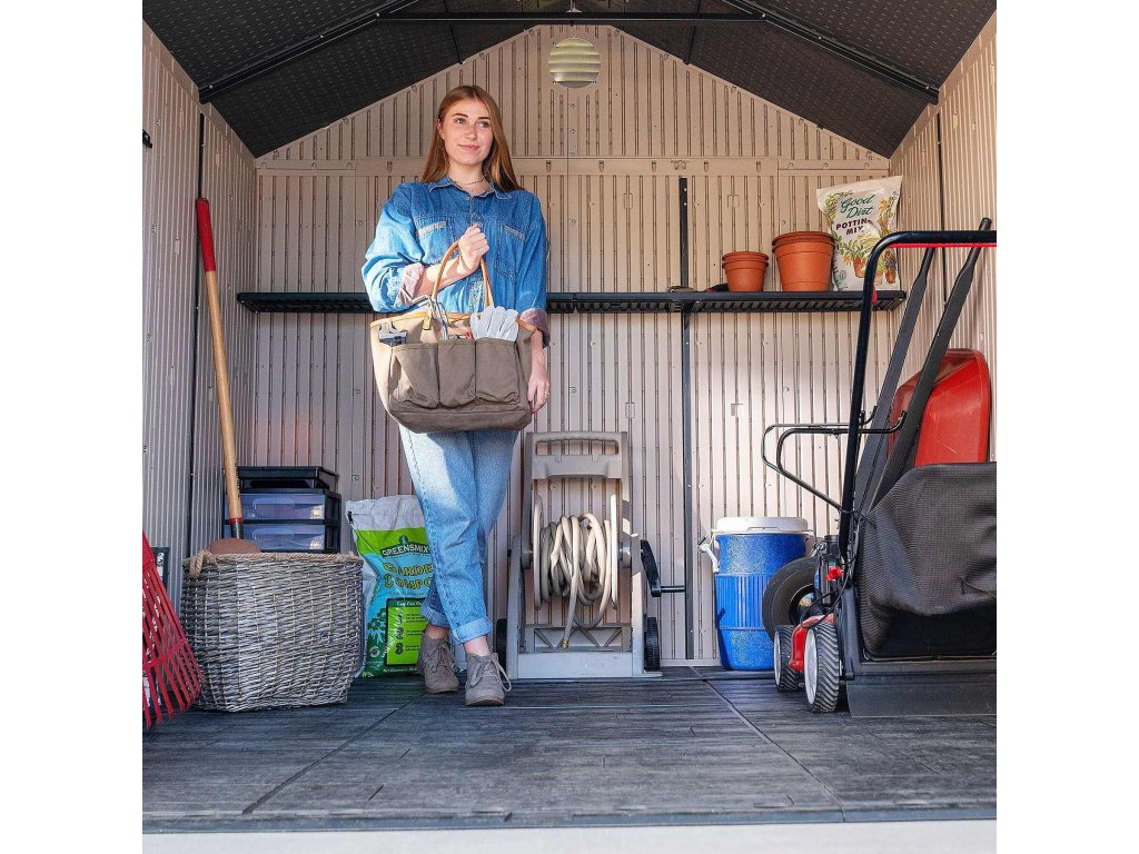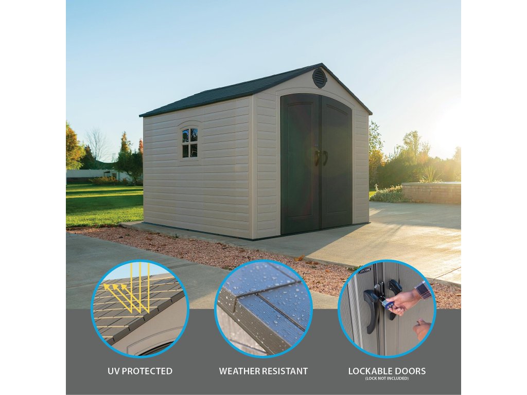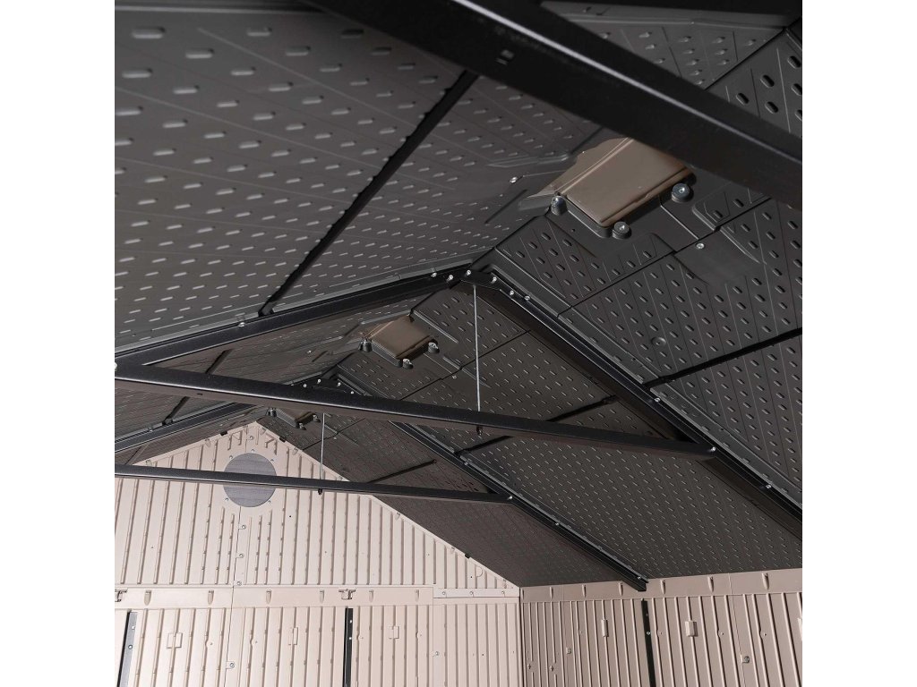 Robustní plastový domek "nové generace" k uskladnění zahrádkářských, sportovních, bazénových, grilovacích, campingových, motoristických a dalších potřeb. Moderní design, snadná montáž, celoroční použití. Zahradní domek má nosnou kovovou konstrukci a dvojité stěny, střecha, dvojité dveře, podlaha jsou vyrobeny z masivního velmi odolného a prakticky nerozbitného plastu. Plastová protiskluzová podlaha je součástí domku (je v ceně). Domek je vybaven dvojitými dveřmi na pantech. Síla dvojité plastové stěny je 26 mm. Sklon střechy je 30o, což výrazně snižuje množství a tlak sněhu na střechu. Materiál domku (extrémně odolný polyethylen s UV filtrem) nežloutne ani nekřehne, takže odpadá pravidelné natírání domku jako je nutné v případě např. dřevěných domků - zahradní plastový domek je prakticky bezúdržbový. Domek je navržen a vyroben tak, aby montáž byla co nejjednodušší a nejkratší. Jednotlivé díly pouze zaklapnete do sousedních dílů a spoj zajistíte šroubkem.