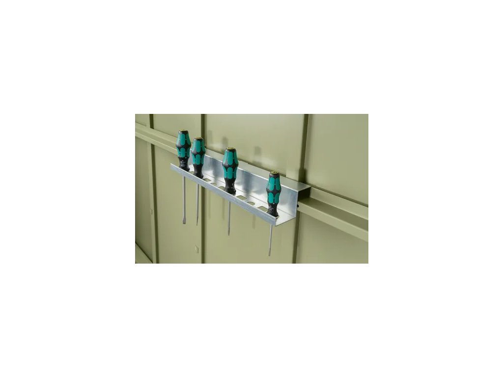 Udržte své nářadí na jednom místě a vždy po ruce s tímto praktickým držákem na stěnu zahradního domku.