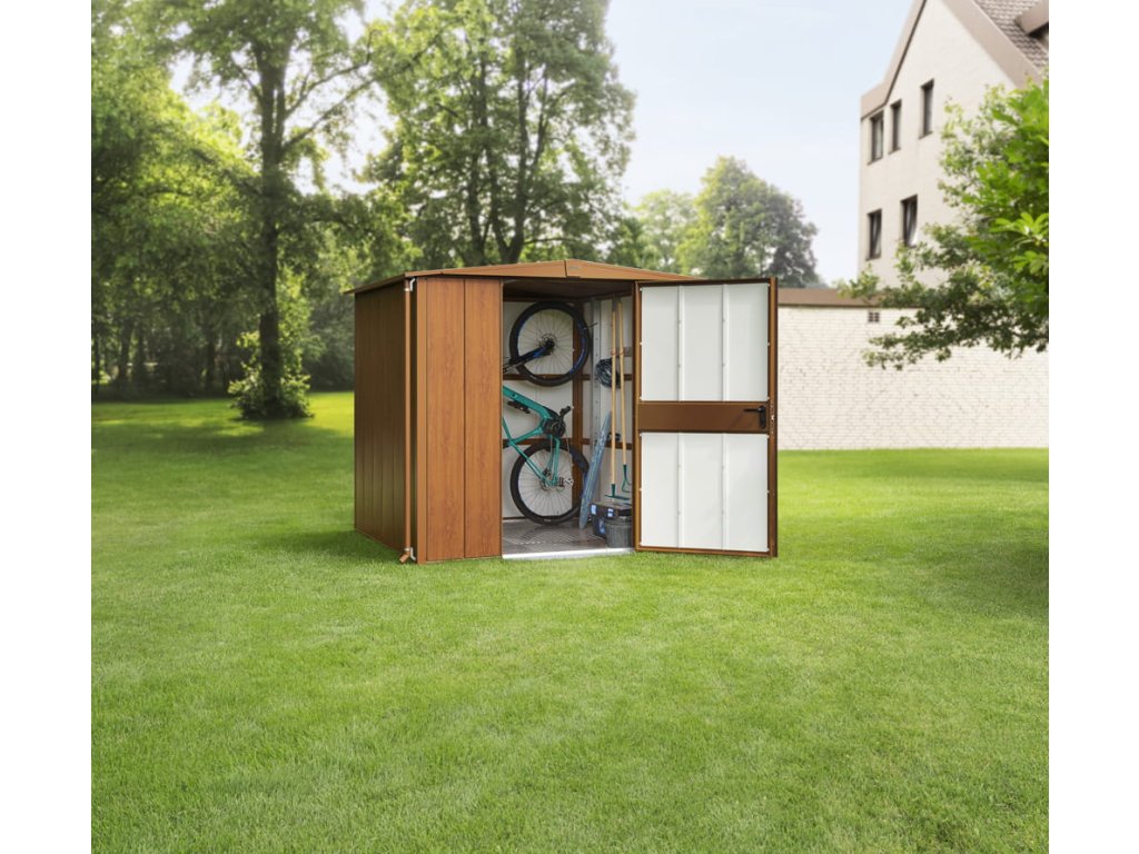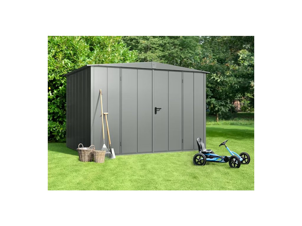 Zahradní domek Berry Modern má moderní a elegantní vzhled s klasickou sedlovou střechou. Německý výrobce Hörmann zaručuje kvalitní zpracování a 20letou záruku. Tento domek je skvělým řešením pro ukládání zahradního náčiní a dalších potřeb, které potřebujete bezpečně uschovat. Pevná konstrukce z ušlechtilé oceli a kvalitního plechu je zárukou ochrany před nepříznivým počasím a dlouhé životnosti.