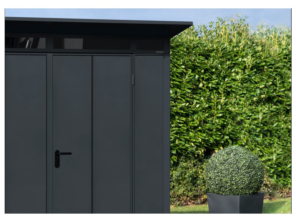 Zahradní domek Berry Modern má lamely široko od sebe a působí moderním a elegantním designem. Německý výrobce Hörmann zaručuje pevnou konstrukci z ušlechtilé oceli a kvalitního plechu a to je zárukou ochrany před nepříznivým počasím a dlouhé životnosti domku. Ten je skvělým řešením pro ukládání zahradního náčiní a dalších zahradních a sportovních potřeb.