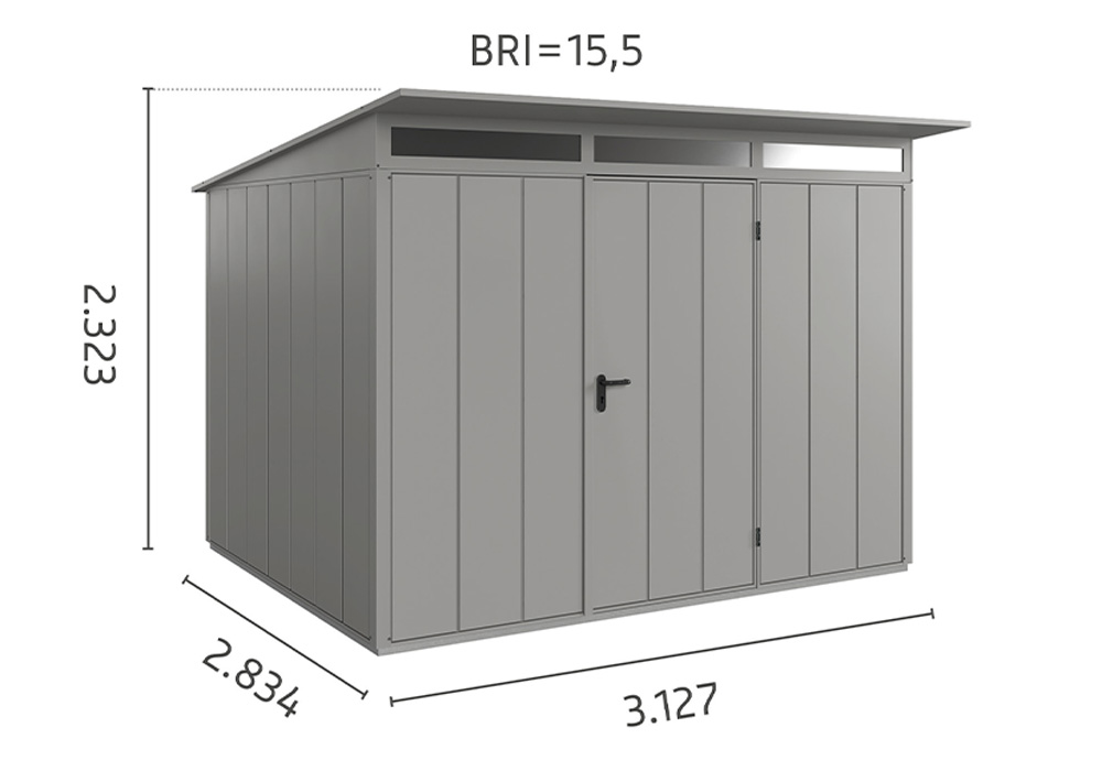 Zahradní domek Berry Modern má lamely široko od sebe a působí moderním a elegantním designem. Německý výrobce Hörmann zaručuje pevnou konstrukci z ušlechtilé oceli a kvalitního plechu a to je zárukou ochrany před nepříznivým počasím a dlouhé životnosti domku. Ten je skvělým řešením pro ukládání zahradního náčiní a dalších zahradních a sportovních potřeb.