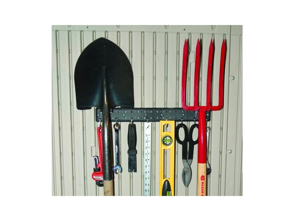 - 2 x upevňovací kovová lišta na zahradní nářadí