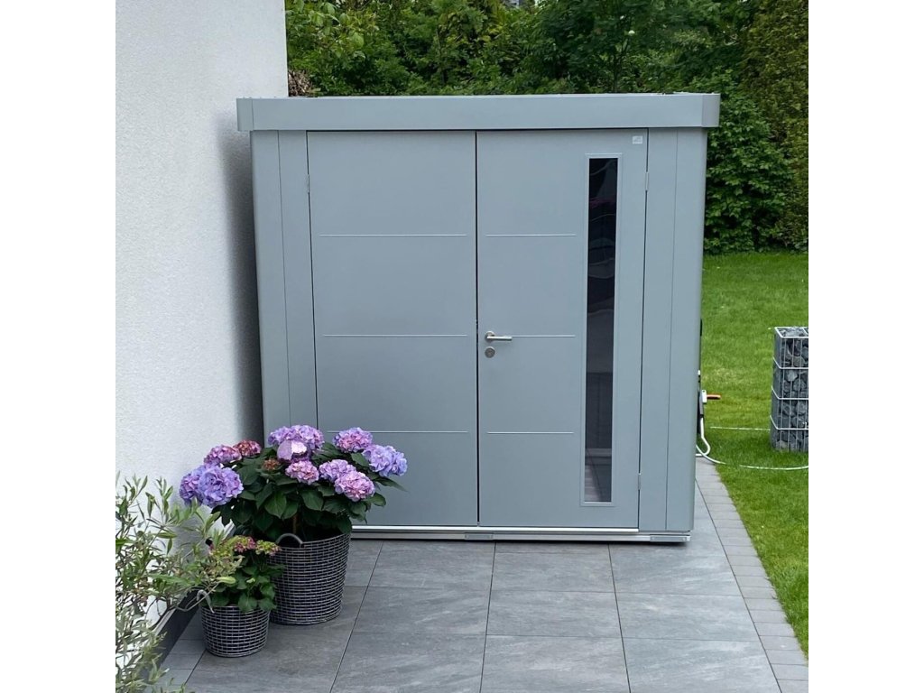 Domek NEO od Biohortu je kombinací stylu, funkčnosti, kvality a bezpečnosti. Je perfektním řešení pro uskladnění vašeho zahradního náčiní a kol, které se stane také nádherným designovým prvkem na vaší zahradě. Jeho hladké boční stěny a skleněné dveře mu dodávají moderní vzhled. Vybírat můžete až z devíti barevných variant a 16 různých rozměrů.