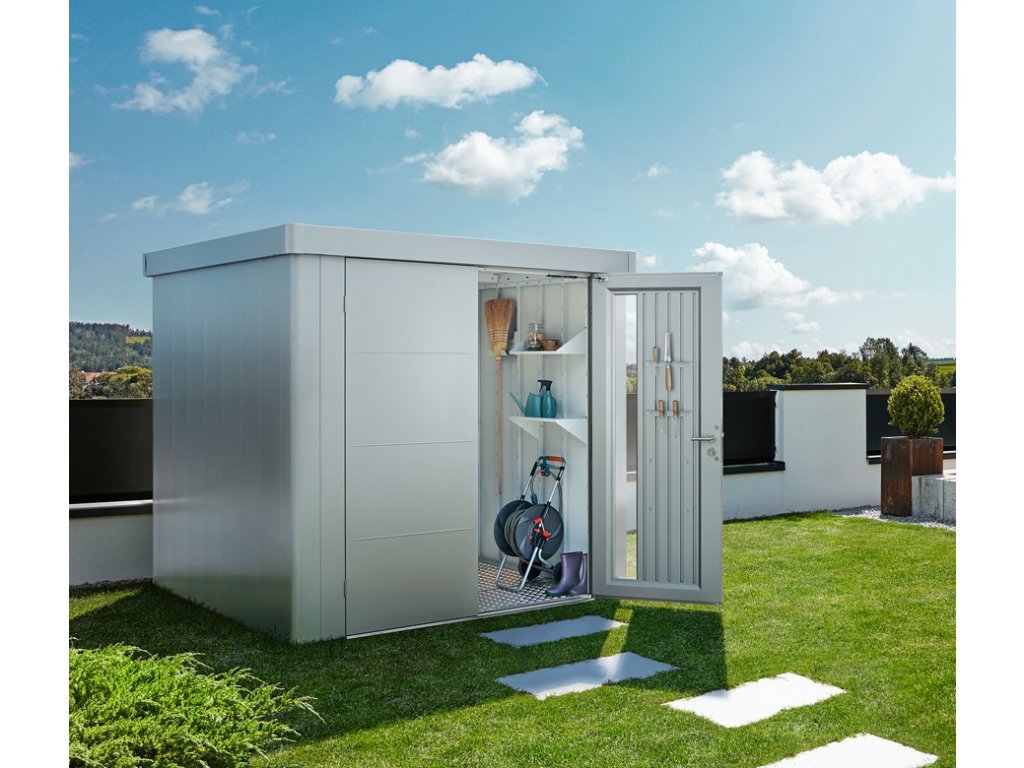 Domek NEO od Biohortu je kombinací stylu, funkčnosti, kvality a bezpečnosti. Je perfektním řešení pro uskladnění vašeho zahradního náčiní a kol, které se stane také nádherným designovým prvkem na vaší zahradě. Jeho hladké boční stěny a skleněné dveře mu dodávají moderní vzhled. Vybírat můžete až z devíti barevných variant a 16 různých rozměrů.