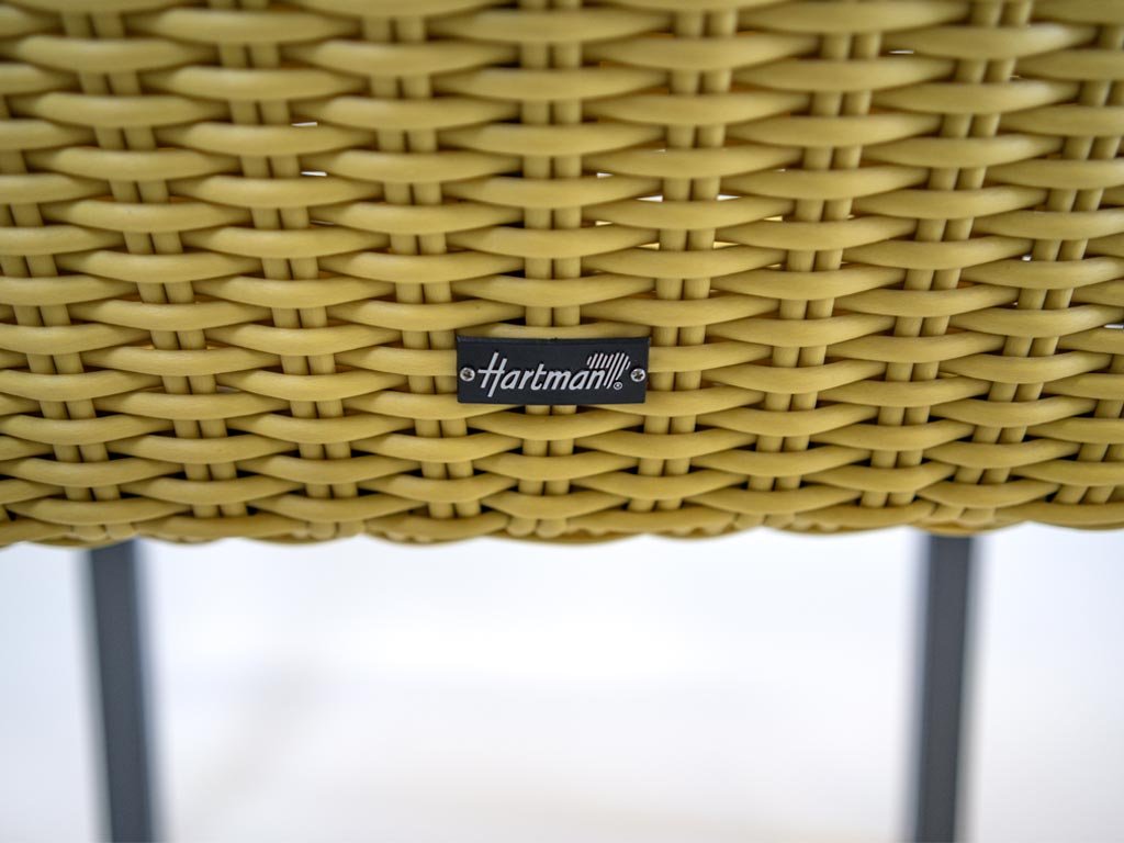 Výplet zahradní židle je z umělého ratanu, který je na rozdíl od přírodního ratanu odolný vůči povětrnostním vlivům, UV-záření, chloru i slané vodě. Židle Hartman je díky svému designu a pohodlí s oblibou využívána i v interiérech. Kostra je vyrobena z hliníku.