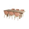 Stůl je vyroben z teakového dřeva a je neuvěřitelně bytelný a odolný. Teak má lehce našedlou barvou, která je pro něj přirozená a v průběhu času ještě lehce zesvětlá. Pokud chcete udržet stejnou barvu dřeva, můžete stůl ošetřit nátěrem. Tento materiály je také velmi odolný vůči různým povětrnostním vlivům a nepřízni počasí. Díky tomu může stůl zůstat venku po celý rok.