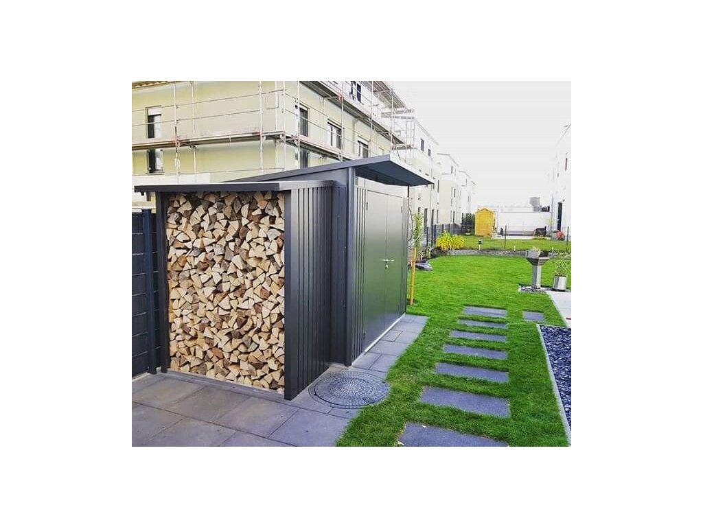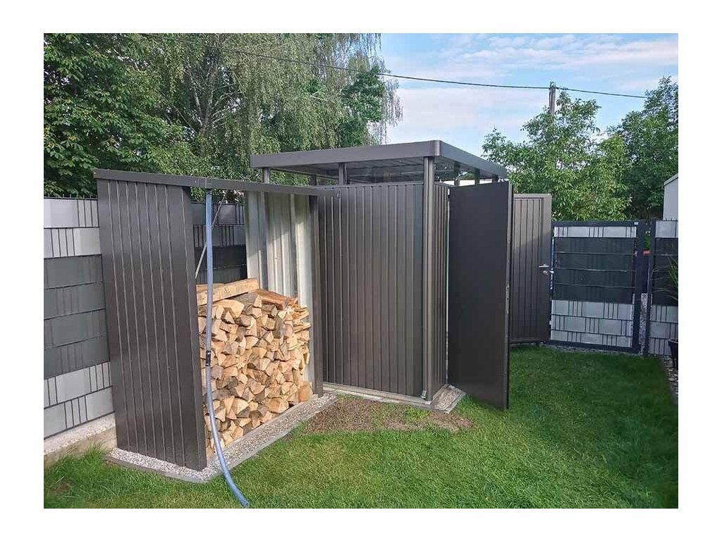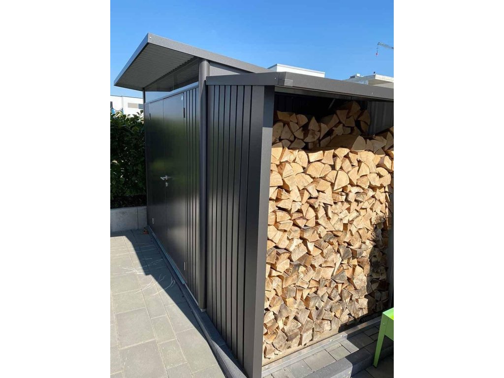 Se základním provedením vaše možnosti nekončí. V nabídce volitelného příslušenství najdete další praktické pomocníky jako např. zadní stěnu k dřevníku, která ochrání zeď domu, nebo přídavný dveřní set, díky kterému přes léto využijete prázdný dřevník k uskladnění sekačky na trávu nebo zahradního nábytku.