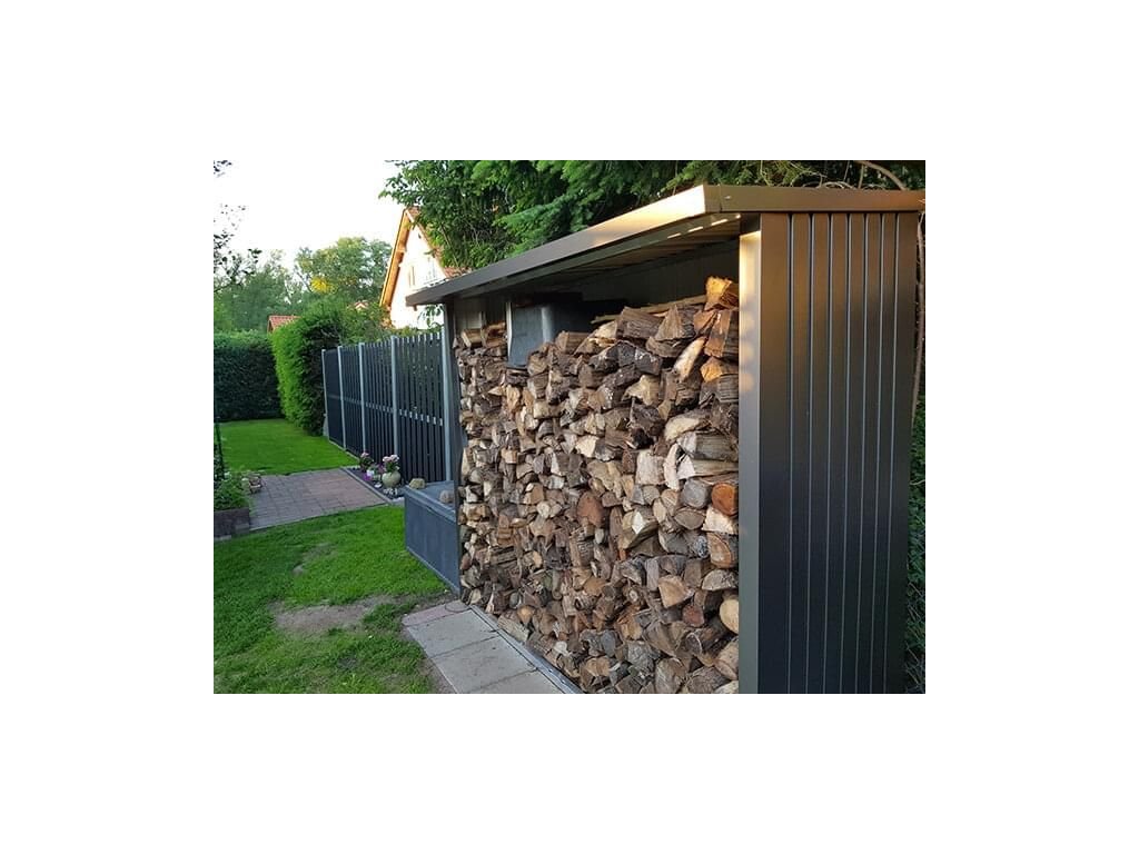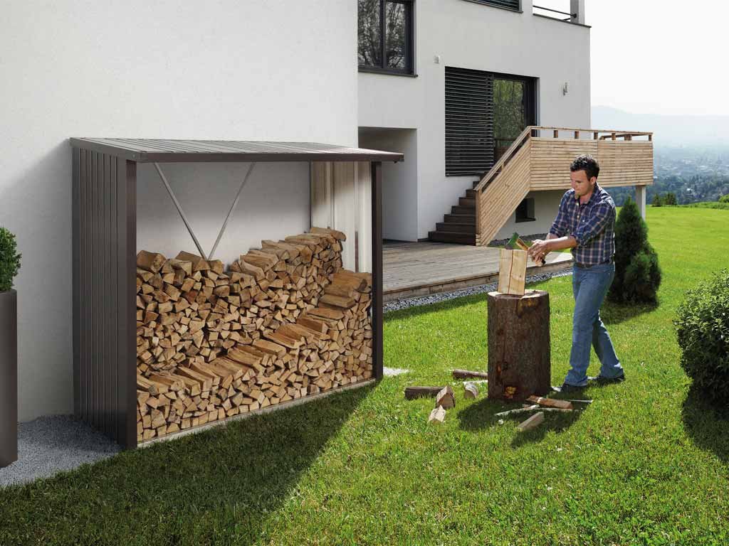 Se základním provedením vaše možnosti nekončí. V nabídce volitelného příslušenství najdete další praktické pomocníky jako např. zadní stěnu k dřevníku, která ochrání zeď domu, nebo přídavný dveřní set, díky kterému přes léto využijete prázdný dřevník k uskladnění sekačky na trávu nebo zahradního nábytku.
