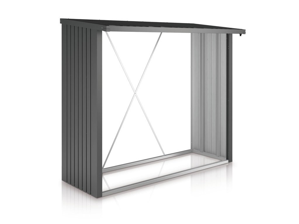 Konstrukci stěn tvoří žárově pozinkovaný ocelový plech o síle 0,5 mm, potažený polyamidovým vypalovacím lakem, šrouby jsou z nerezové oceli. Vysokou boční stabilitu zajišťuje pevný rámu z hliníkových trubek (40 x 40 mm), vydrží vysoké zatížení sněhem. Integrovaný okapový žlab na přední části střechy. Do přístřešku se pohodlně vejde jedna řada velkých polen, anebo dvě řady menších polínek (max. 35 cm dlouhých).