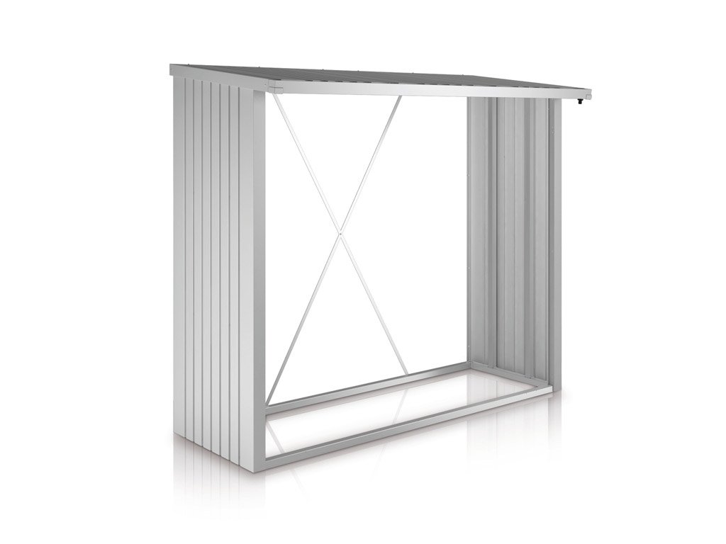 Konstrukci stěn tvoří žárově pozinkovaný ocelový plech o síle 0,5 mm, potažený polyamidovým vypalovacím lakem, šrouby jsou z nerezové oceli. Vysokou boční stabilitu zajišťuje pevný rámu z hliníkových trubek (40 x 40 mm), vydrží vysoké zatížení sněhem. Integrovaný okapový žlab na přední části střechy. Do přístřešku se pohodlně vejde jedna řada velkých polen, anebo dvě řady menších polínek (max. 35 cm dlouhých).