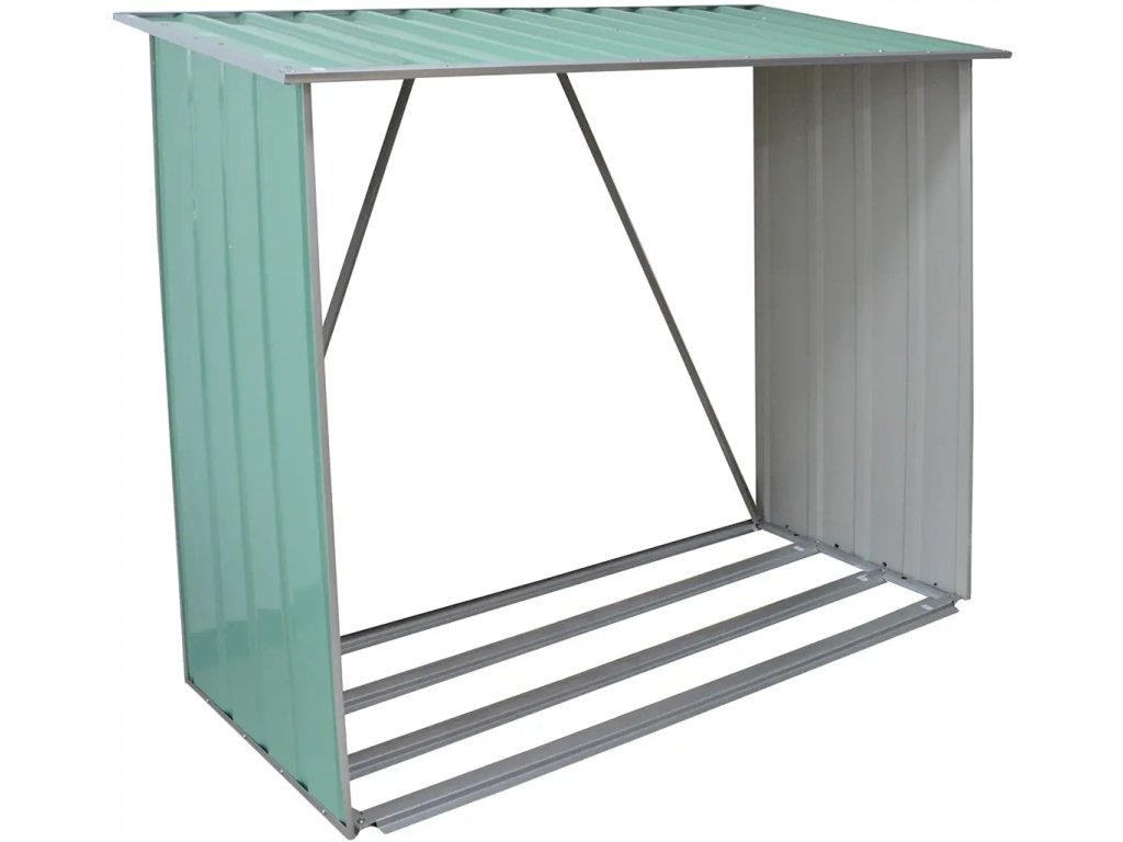 Přístřešek na dřevo je vyroben z vysoce kvalitního zinkovaného plechu, což vám zaručí, že přístřešek opravdu něco vydrží. Z venkovní strany má domek zelenou barvu, takže hezky splyne s okolní přírodou a bude ladit s vaší zahradou. Uvnitř je přístřešek nastříkán na šedo.