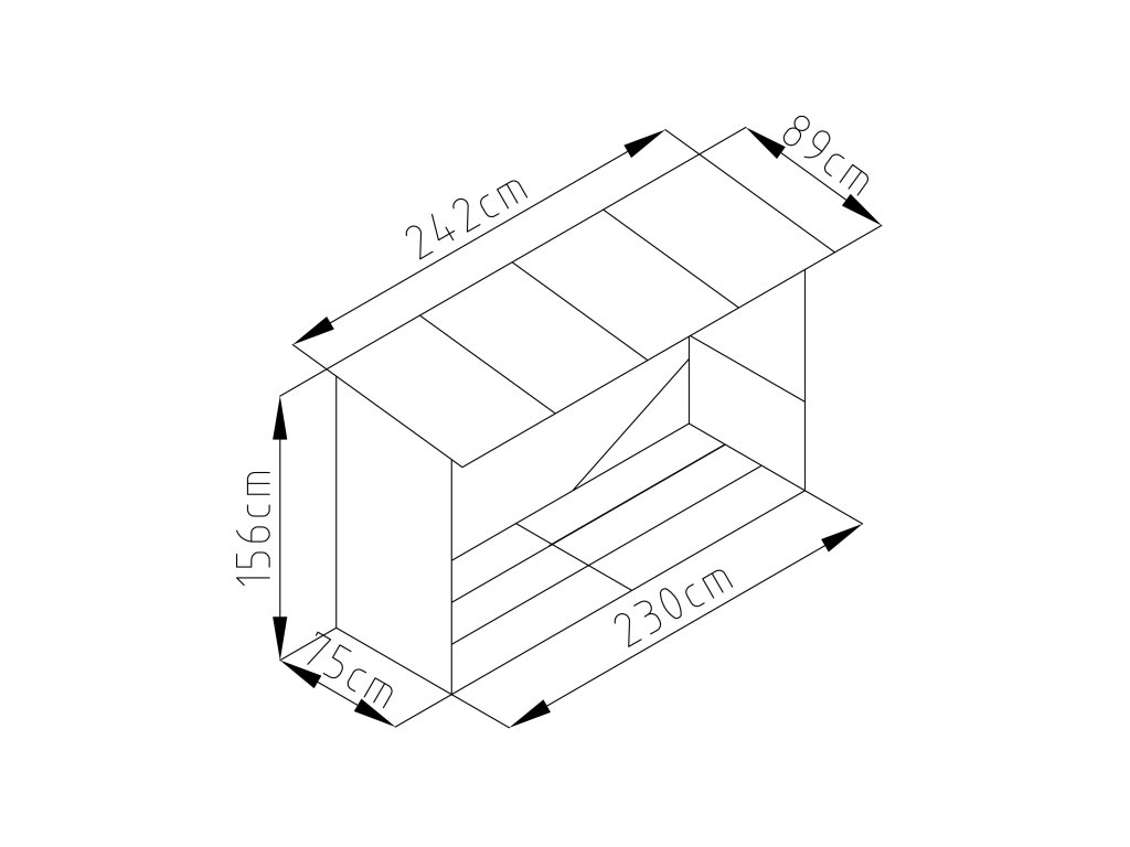 - Rozměry přístřešku se střechou (š x v x d): 242 x 156 x 89 cm