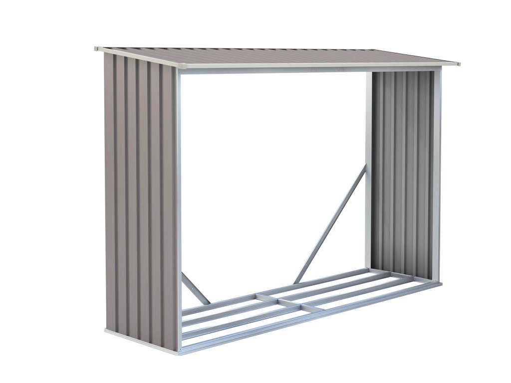 Dřevo se vám do domku bude bez potíží skládat a následně i odebírat. Vejde se do něj jedna řada velkých polen, anebo dvě řady menších polínek. Plechový domek se postará, aby dřevo na vytápění i na gril bylo vždy v suchu.