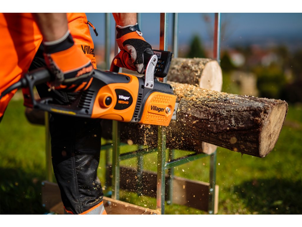 Elektrická řetězová pila VILLAGER 2 400 W je určená pro občasné použití na zahradě při prořezávání větví, kácení stromků, keřů, k přípravě otopového dřeva nebo tesařských a stavebních pracích v prostředí chat, chalup a rodinných domů.