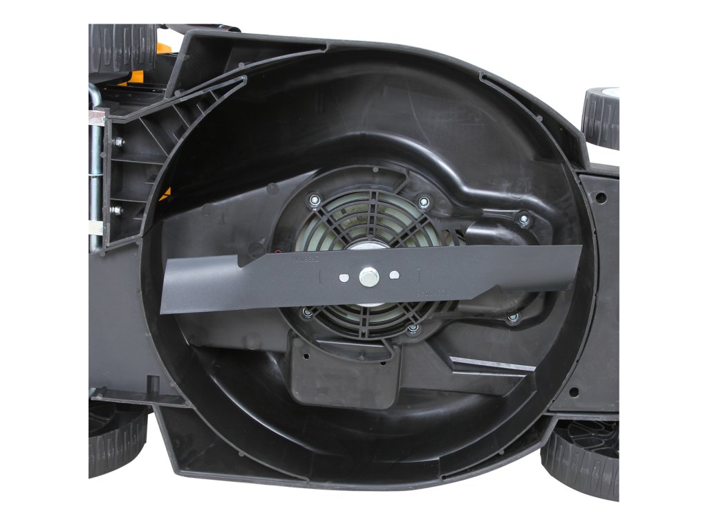 Sekačka je poháněna výkonným 1700 W motorem. Převod otáček pomocí malého klínového řemene výrazně zvyšuje točivý moment stroje (více síly i v hustší trávě) a při nárazu nože na překážku zabrání spálení motoru a tím pádem i drahé opravě. Motor je tichý a bezúdržbový s dlouhou životností. Výhodou této sekačky je také velice jednoduché nastavení výšky sekání, které se provádí pákou umístěnou na šasi v rozsahu 25 až 75 mm.