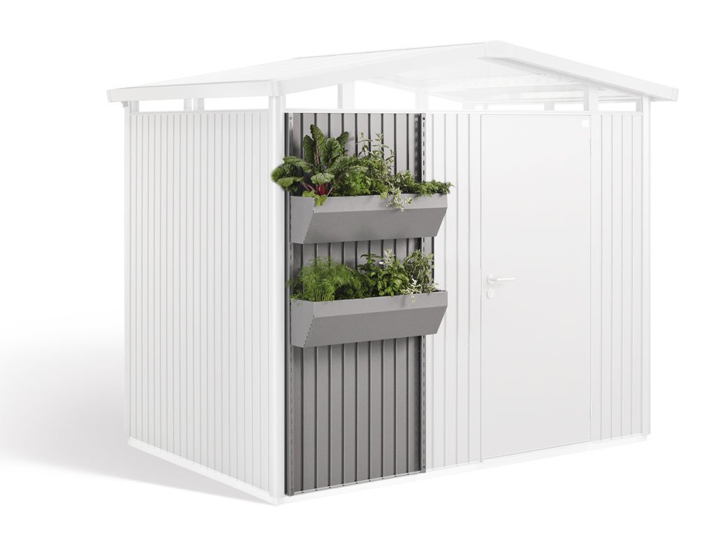 Truhlíky FloraBoard na květiny pro zahradní domek Highline, Panorama a Avantgarde od renomovaného rakouského výrobce Biohort. Vkusný dekorační doplňek v rámci volitelného příslušenství dodávající domku ojedinělé kouzlo. Truhlíky lze výškově nastavovat dle potřeb a také individuálně použít na jakékoliv místo a to i ve větším počtu vedle sebe.