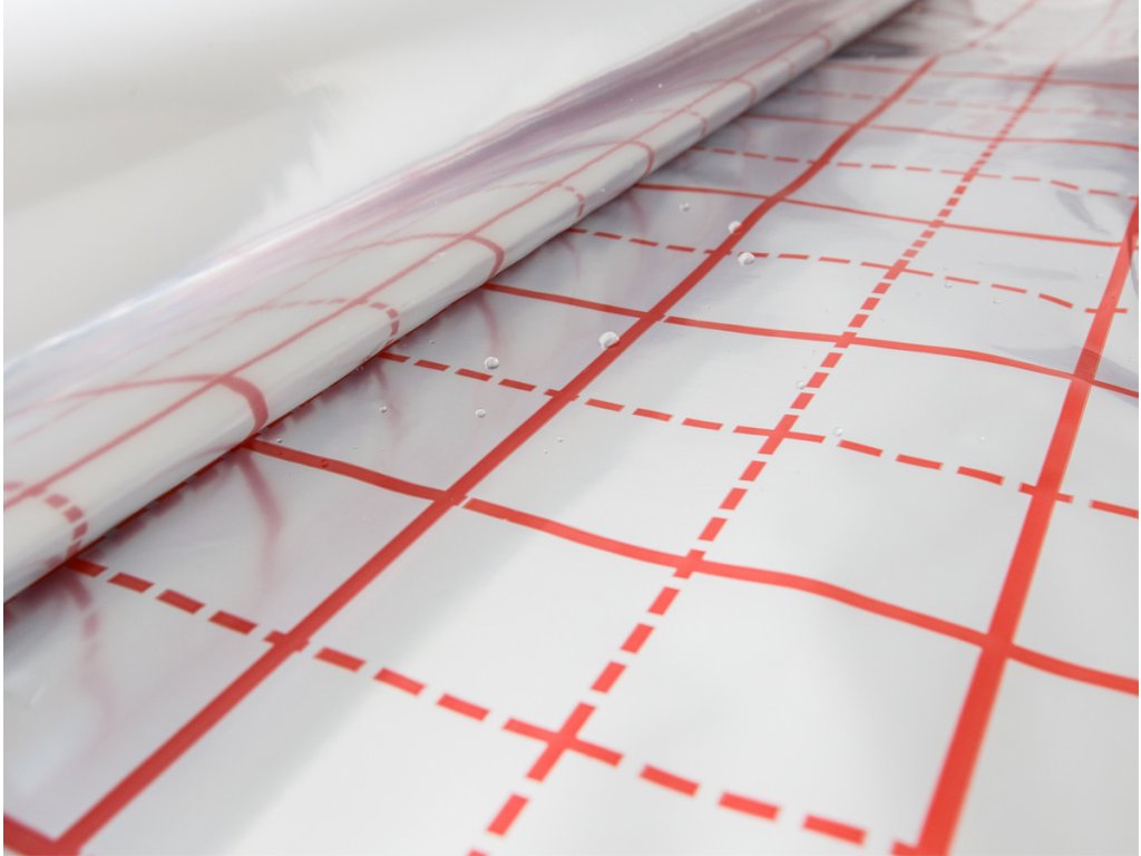 - Fólie je potištěna rastrem s roztečí po 5 cm, což usnadňuje přesné pokládání trubek a zajišťuje rovnoměrné rozložení tepla.