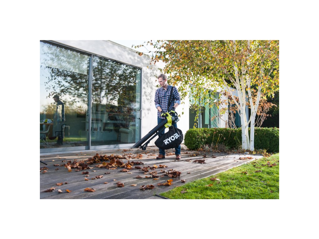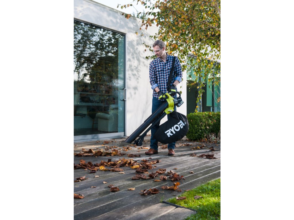 Výkonný akumulátorový foukač/vysavač listí RYOBI OBV18, 18 V je nedocenitelným pomocníkem pro podzimní úklidy na zahradě a v okolí domu. Foukač dokáže listí vysávat, foukat i mulčovat. Listí jednoduše nafoukáte na jednu hromadu, následně ho vysajete, při čemž dojde k rozdrcení a mnohonásobnému zmenšení objemu listí. Nadrcenou směs poté využijete jako výborný základ do kompostu. Je zejména vhodný pro použití tam, kde není přístup k elektřině, nebo pokud nechcete manipulovat s napájecím kabelem.