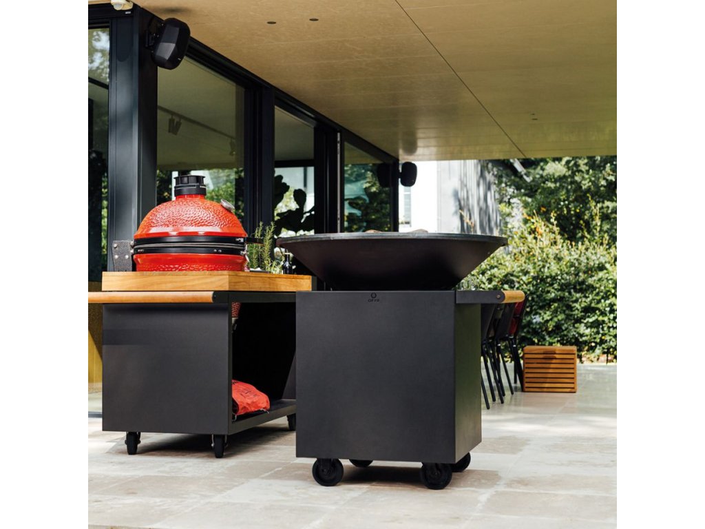 Grilovací kruhové ohniště OFYR nabízí široké možnosti grilování a vaření přímo na jeho rozpáleném povrchu. Díky kruhovému designu a ohništi ve středu můžete na něm připravit prakticky cokoli. Podobně jako u přenosných ohnišť, je OFYR mobilní a může být umístěn na podstavci nebo součástí multifunkční skříně.