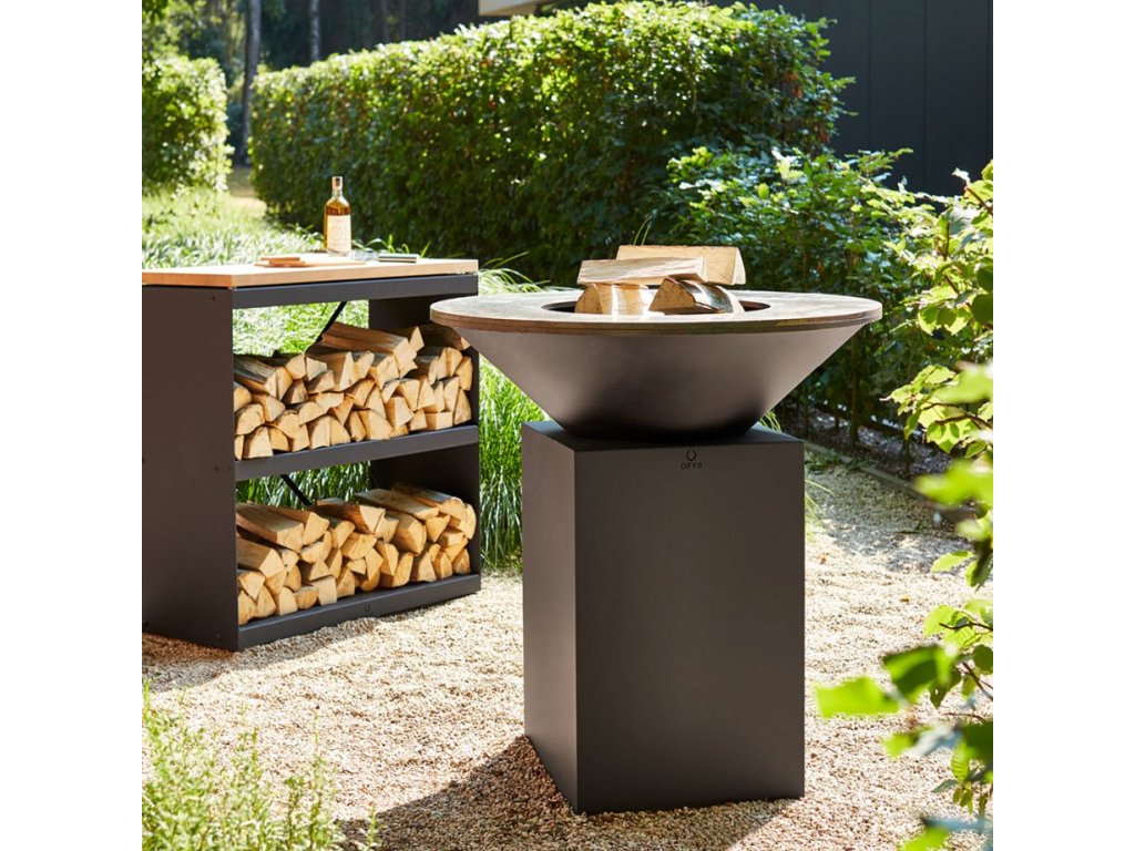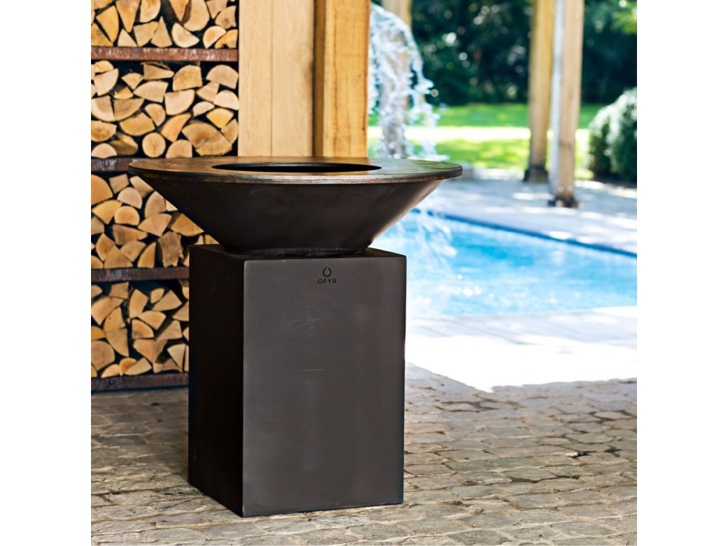 Grilovací kruhové ohniště OFYR nabízí široké možnosti grilování a vaření přímo na jeho rozpáleném povrchu. Díky kruhovému designu a ohništi ve středu můžete na něm připravit prakticky cokoli. Podobně jako u přenosných ohnišť, je OFYR mobilní a může být umístěn na podstavci nebo součástí multifunkční skříně.