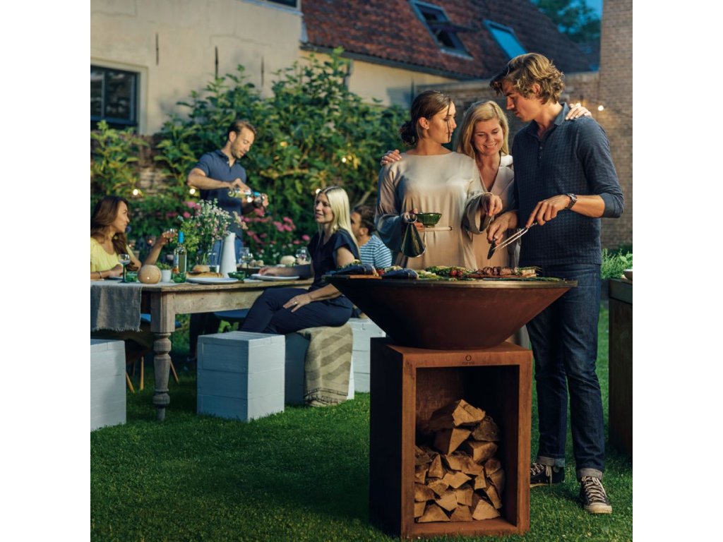 Grilovací ohniště OFYR Classic Storage 100 Corten představuje model z řady OFYR, který se vyznačuje praktickým a kompaktním designem ideálním pro každou zahradu nebo terasu. Tento gril je vybaven inovativní vložkou pro podporu proudění vzduchu, která nejenže zlepšuje spalování dřeva, ale také minimalizuje tvorbu kouře.