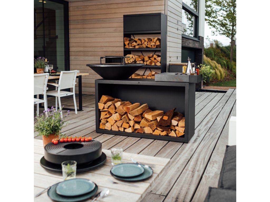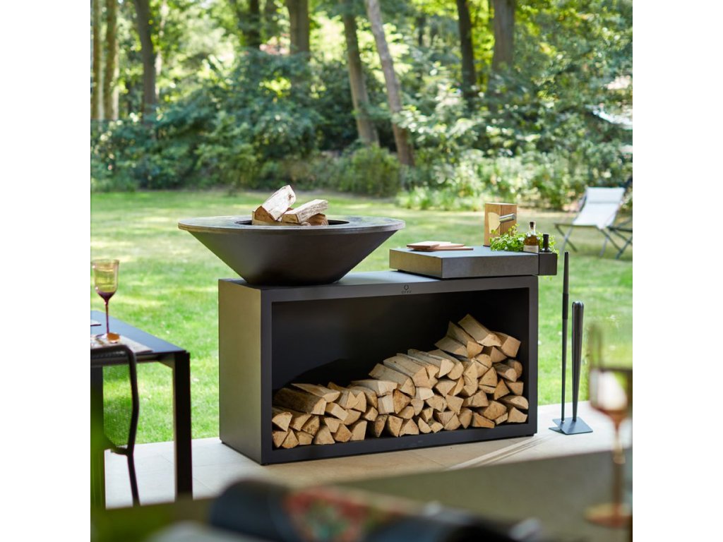 Grilovací ohniště OFYR Island 100 Black s keramickou šedou deskou představuje nový základní model z řady OFYR, který se vyznačuje praktickým a kompaktním designem ideálním pro každou zahradu nebo terasu. Tento gril je vybaven inovativní vložkou pro podporu proudění vzduchu, která nejenže zlepšuje spalování dřeva, ale také minimalizuje tvorbu kouře.