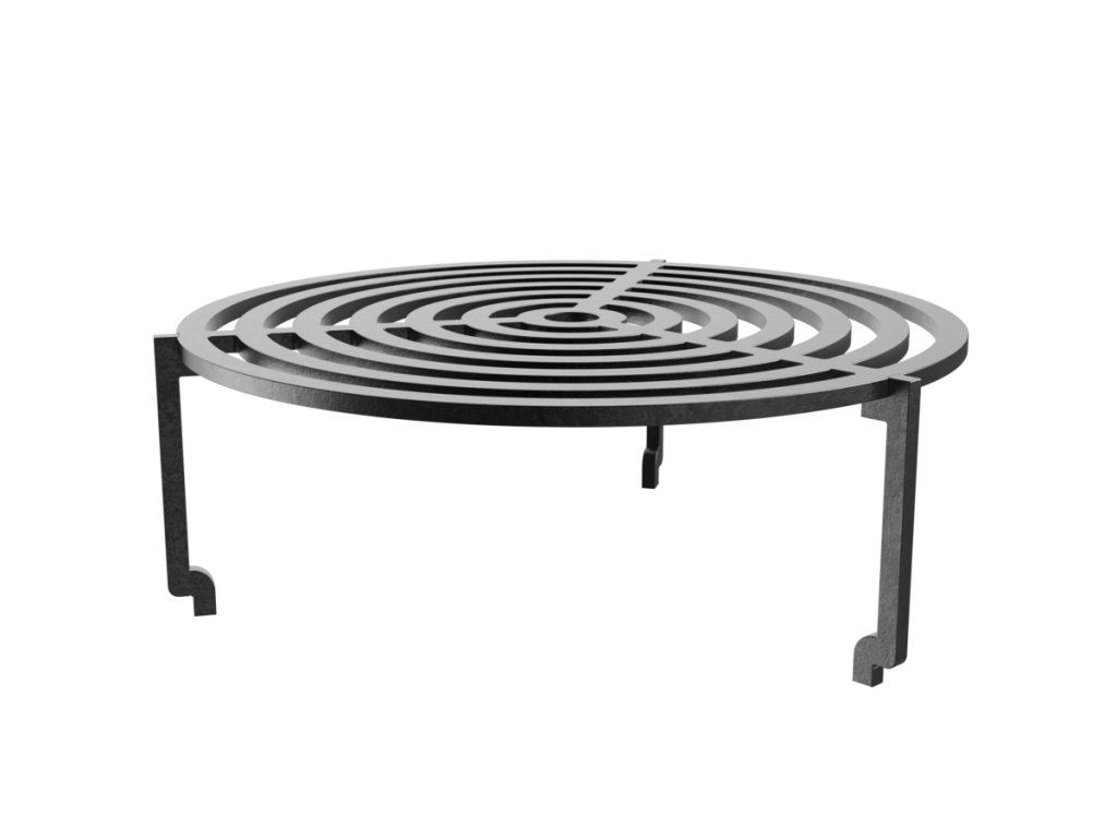 Tento robustní dvoudílný gril je ideální pro přípravu větších kusů masa na ohništi OFYR. Umístěte gril doprostřed přímo nad plameny, které pokrmu dodají kouřovou chuť. Varné plotně OFYR gril nijak nepřekáží, takže můžete současně připravovat další pokrmy, a zároveň lze snadno přikládat dřevo, protože gril stojí na vyvýšených nohách. Výška nožiček 11,5 cm.