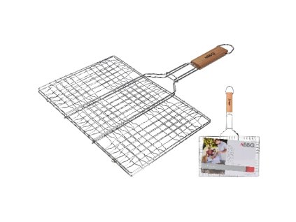 Nerezový rošt s dřevěnými rukojeťmi o rozměru 53 x 42 cm určený do krbů a otevřených...