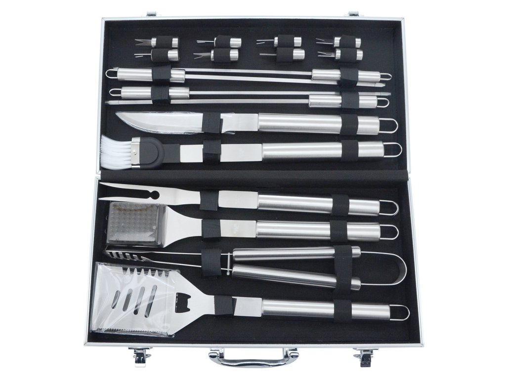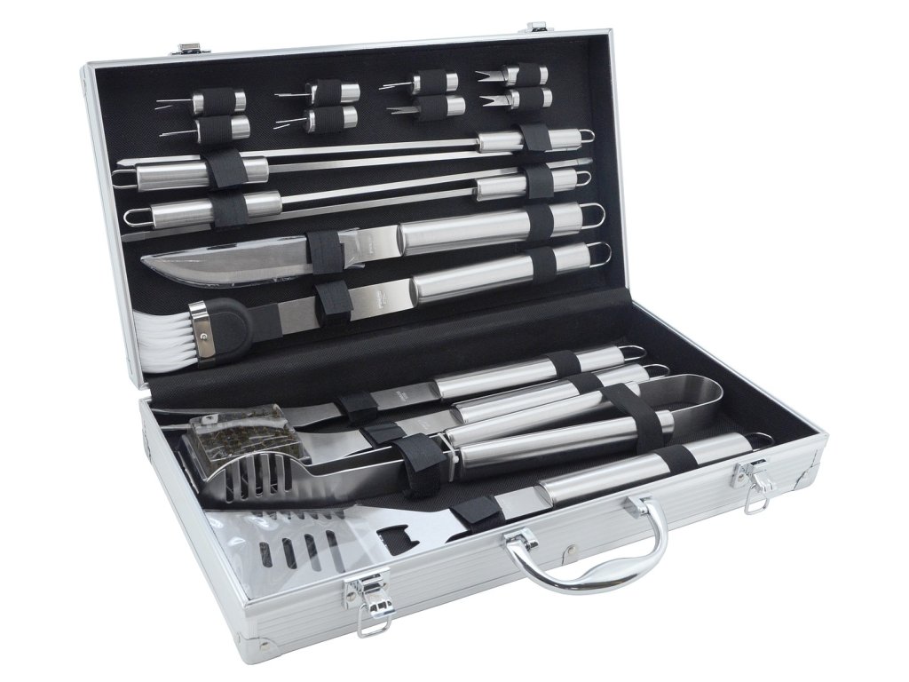 Grilovací sada je nepostradatelný pomocník při domácím grilování. Praktický hliníkový kufr je určení pro úhledné uskladnění, zároveň je perfektní pro cestování a hodí se tak i pro náročné uživatele.