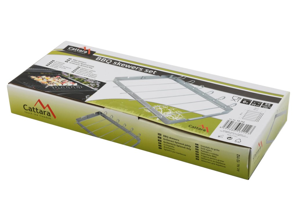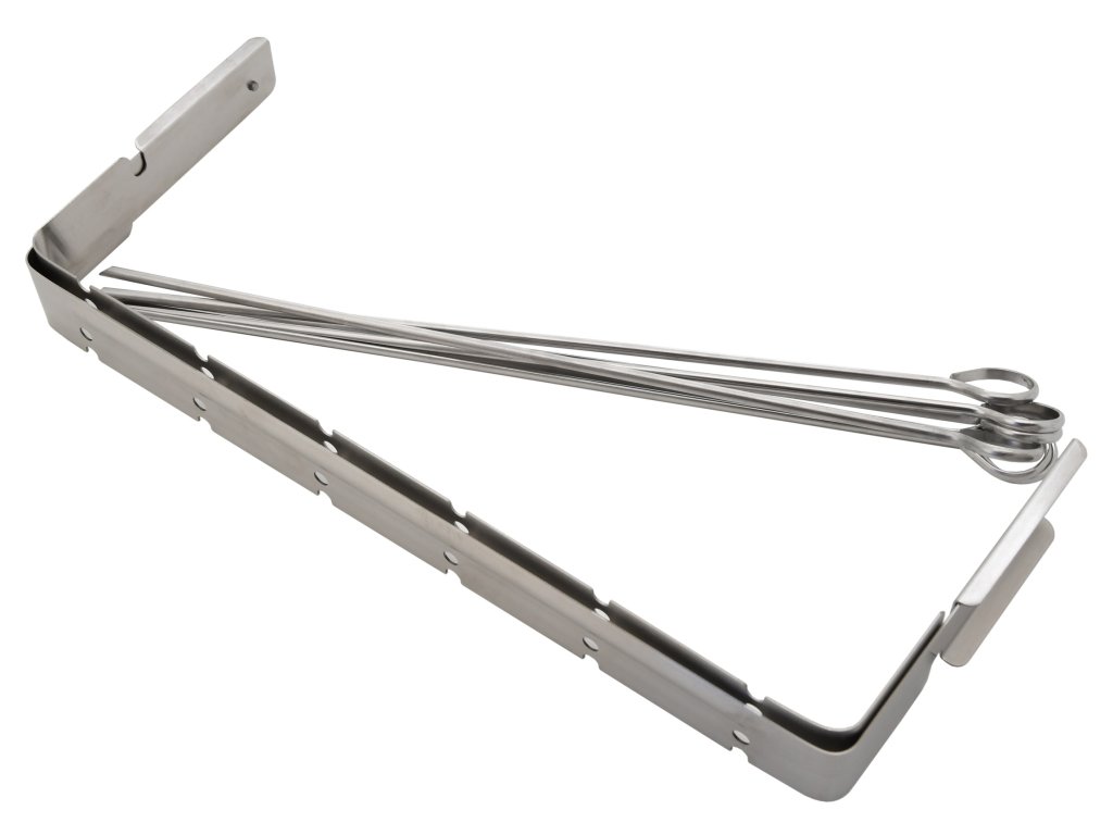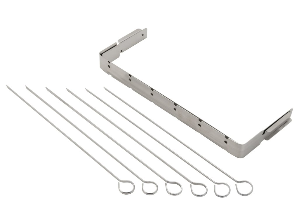 V sadě je 6 kusů jehel z nerezové oceli s délkou 34 cm, které jsou určené k položení na rám ve výšce 3 cm, či k přípravě špízů při protažení otvory ve výšce 2 cm, čímž je po ugrilování vytažením jehel z konstrukce zajištěno snadné stažení pokrmu. Rámeček z nerezové oceli má rozměry 35 x 25 cm a jeho použitím je výrazně usnadněné otáčení jednotlivých špízů při jejich přípravě.