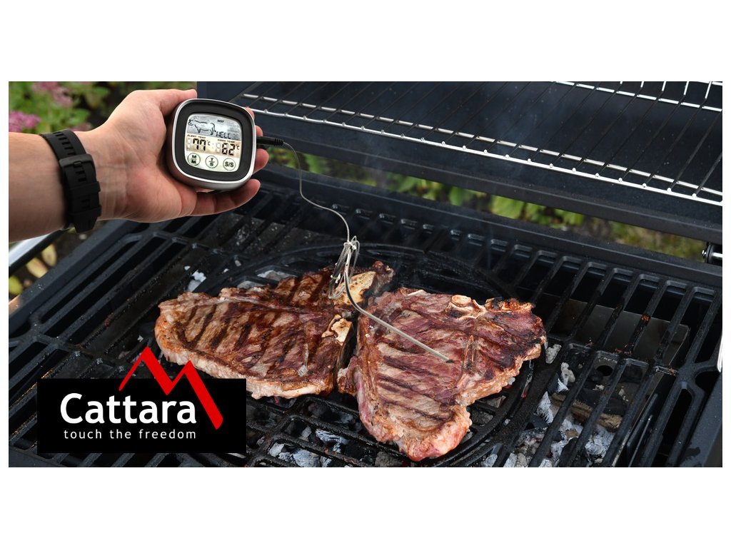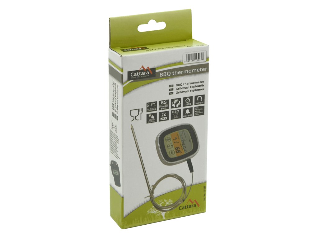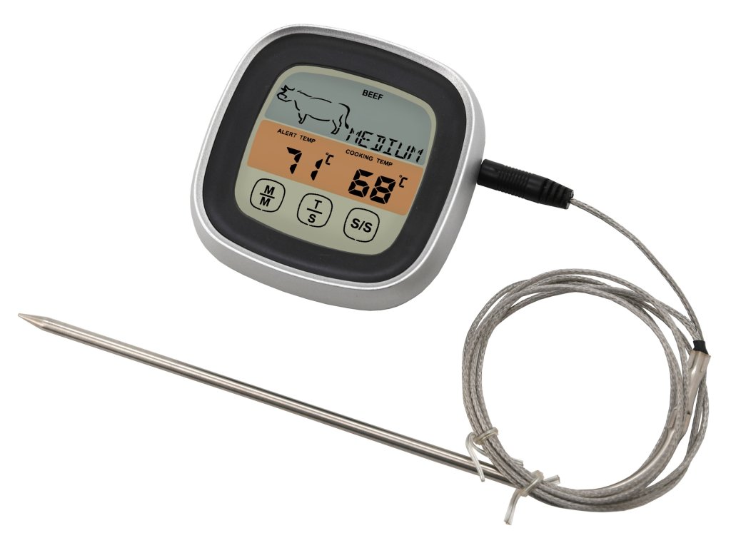 Praktický digitální teploměr pro grilování, s odepínatelnou nerezovou sondou a dotykovým displejem pro snadné používání.