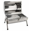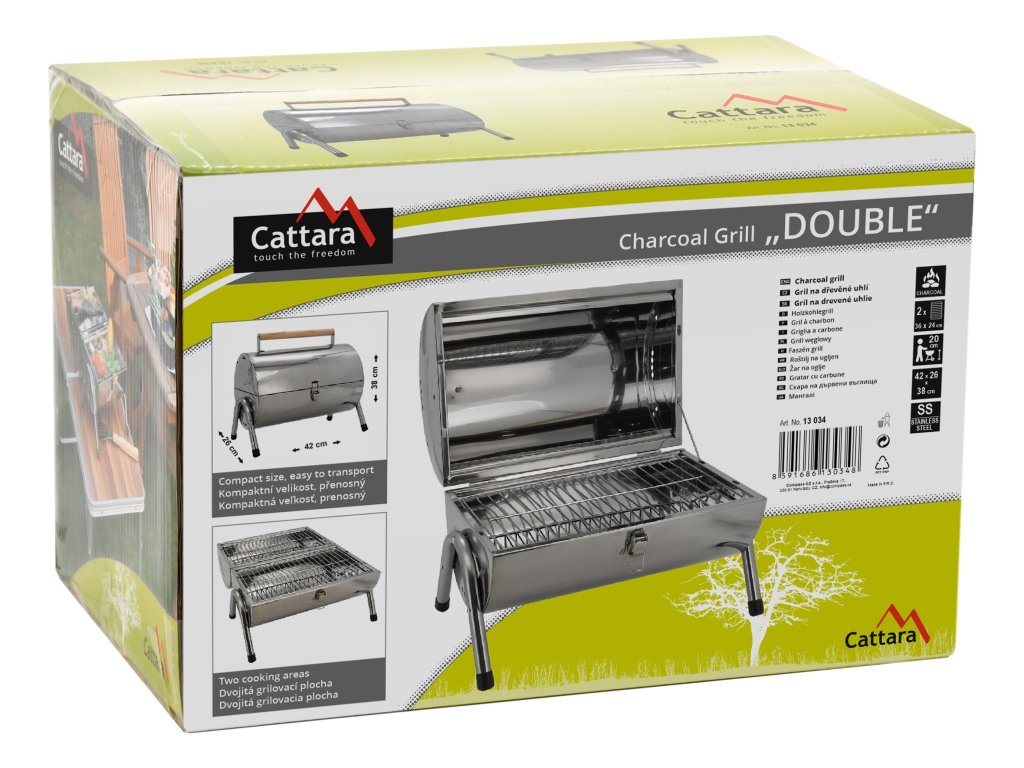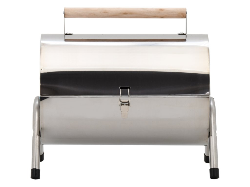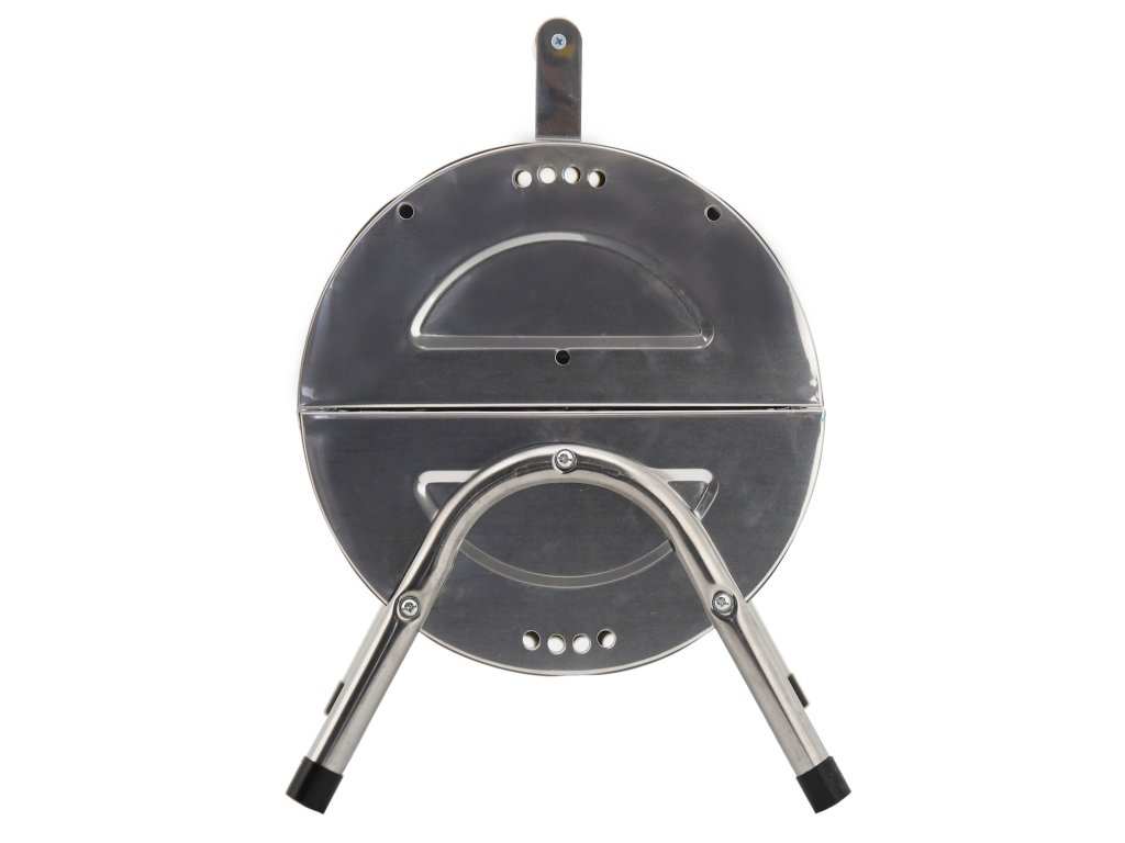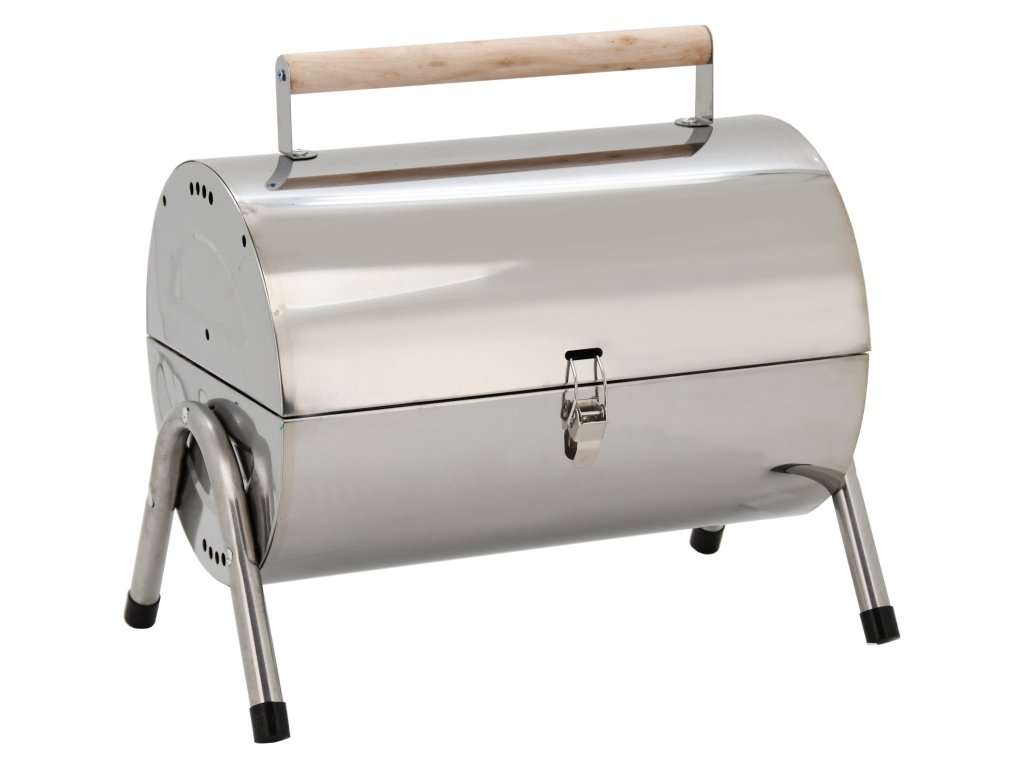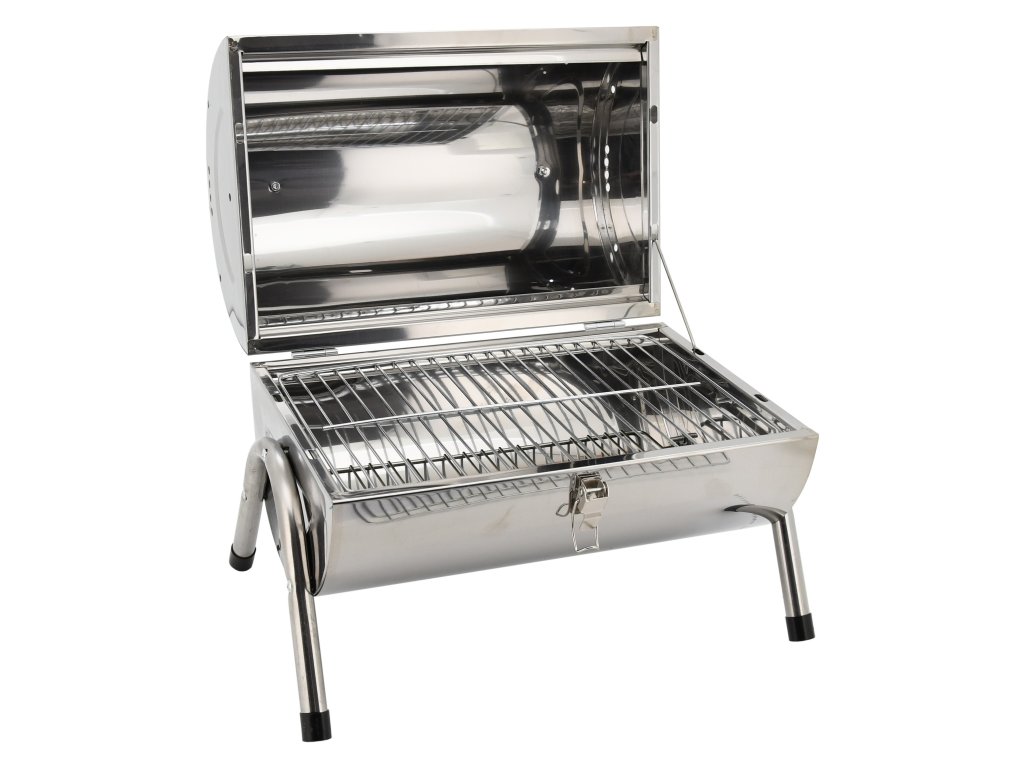 Konstrukce grilu je vyrobena z kvalitního nerezového plechu s leštěnou povrchovou úpravou. Stabilitu zajišťují čtyři kovového nohy. Dřevěné madlo zajistí pohodlné přenášení.