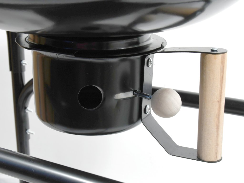 Gril je vybaven regulovatelnou ventilací a vysouvacím popelníkem. Víko je zcela odnímatelné, z vnitřní strany opatřené hákem pro zavěšení na bok grilu.