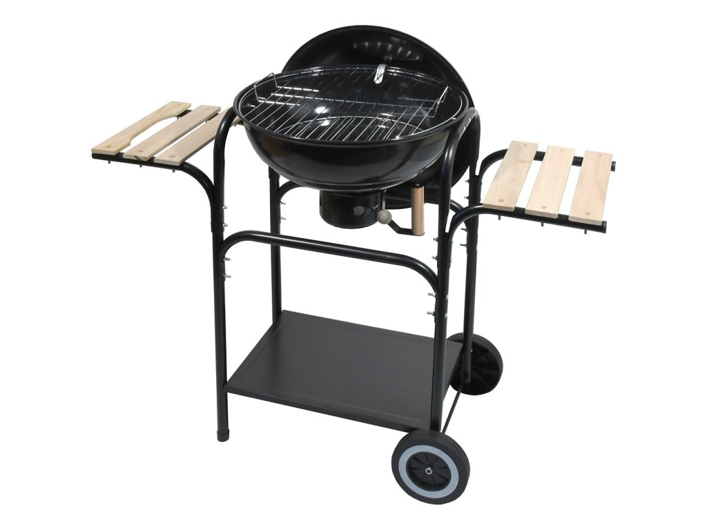 Pro přípravu grilovaných pokrmů máte k dispozici rošt z chromované oceli o průměru 45 cm. Pro odkládání jsou zde k dispozici dvě dřevěné poličky s rozměry 31 x 21 cm, které jsou umístěné na bocích grilu.
