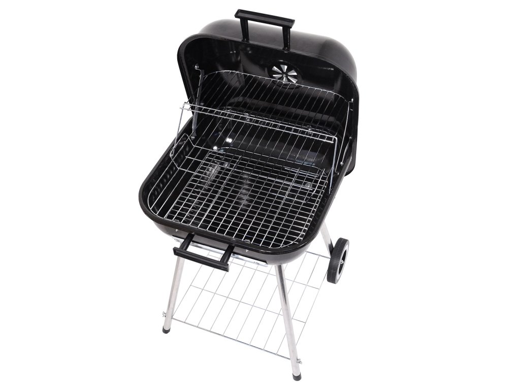 Víko grilu je zcela odnímatelné a z vnitřní strany opatřené hákem pro zavěšení.