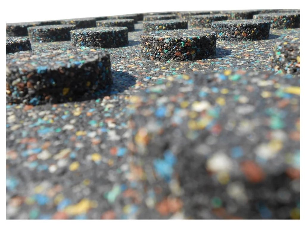 Pryžové dlaždice vhodné pro vytvoření odolné a pohodlné dlažby ve venkovních prostorech i interiéru, zejména v tělocvičnách. Dlaždice o rozměru 40 x 40 x 3 cm jsou vyrobeny z recyklované pryže s pružným PU lepidlem, jedná se tedy o ekologický a cenově dostupný materiál. Směs barevných pryžových granulí dodává dlažbě zajímavý vzhled - imitaci litého kamene.