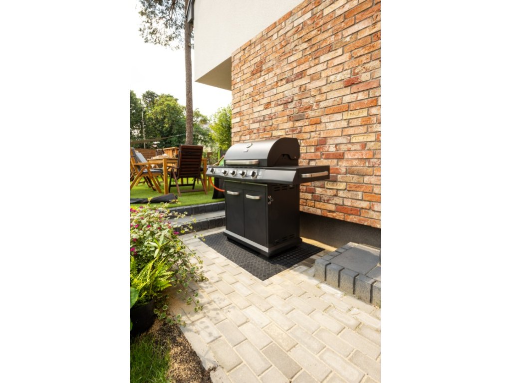 Gumová podložka pod gril vyrobena z pryžového recyklátu chrání podlahové povrchy před odřením a poškrábáním. Podložka je vyrobena z pryžového recyklátu a díky tomu je pružná, měkka a po povrchu se nepohybuje. Je univerzální a dá se použít mnoha způsoby např. pod gril, fitness nářadí, do dílny, v garáži, zahradních domkách atd. Tento model je určen především pod grily.