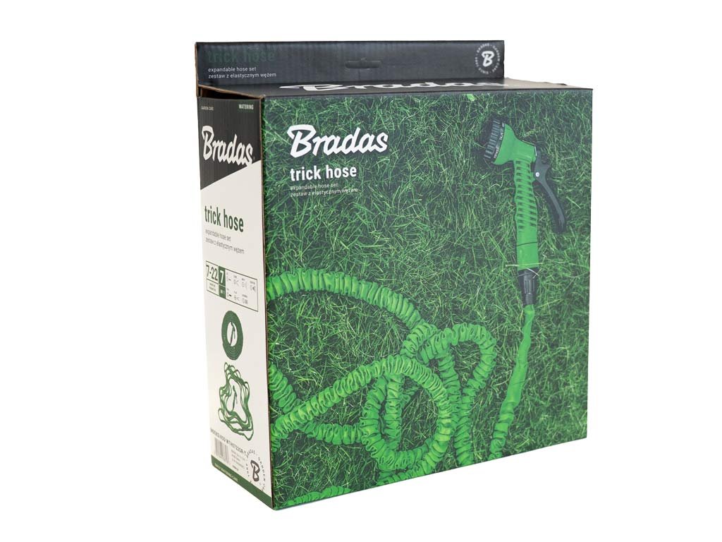 Hadice je vyrobena z vysoce kvalitních odolných materiálů. Vnitřek hadice je vyroben z odolné a pružné pryžové síťoviny tvořící ochrannou vnější vrstvu. Pod vlivem tlaku vody se hadice až 3x protáhne, což usnadňuje zalévání a pohyb po zahradě. Při vypouštění vody se hadice automaticky stáhne do své původní velikosti.