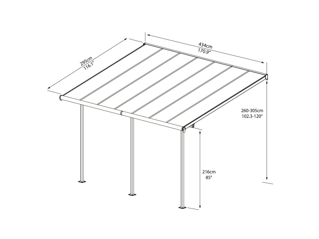Sierra 4200 antracit 3 x 4,25 hliníková pergola od značky PALRAM Sierra je elegantní a kvalitní řešení pro zakrytí vaší verandy nebo terasy. Moderní a praktická hliníková pergola, která dlouho vydrží, je za dostupnou cenu, výborně vypadá a postavíte ji ve dvou lidech za jedno odpoledne. Bude skvělým doplňkem vaší zahrady a bude vám poskytovat úkryt před sluncem a ochranu před deštěm.