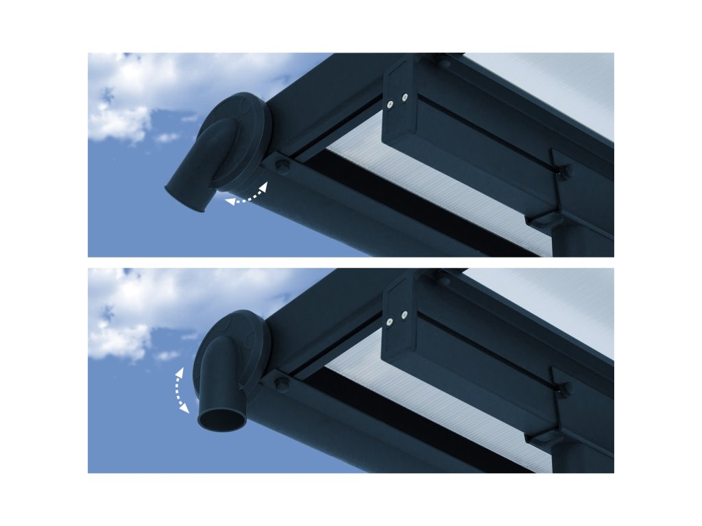 Pokud je třeba, dají se (pouze u pergoly Sierra) střešní panely na zimu jednoduše vyndat. Pomocí jednoduchého propojovacího kitu můžete spojit libovolný počet pergol Siera i různých rozměrů vedle sebe a vytvořit tak libovolně dlouhou pergolu. Pomocí bočního dílu můžete zakrýt pergolu z jedné nebo obou stran a zvýšit tak ochranu před větrem.