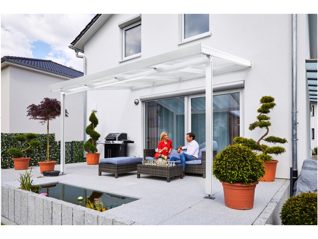 Elegantní, všestranně využitelná, hliníková pergola Terrassendach Premium 3,09 x 3,06 m - bílá, bude skvělým doplňkem vaší zahrady a bude vám poskytovat úkryt před sluncem a ochranu před deštěm. Lze ji využít nejen jako zastínění terasy či verandy, ale také jako přístřešek pro auto (carport). Prémiová hliníková pergola Gutta v nejvyšší kvalitě splňuje i vysoké standardy v oblasti designu.