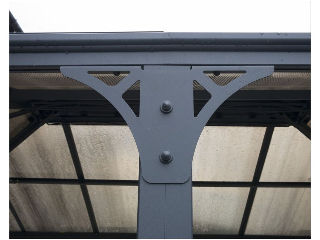 V podstatě nezničitelné střešní panely z 6 mm silného dvoukomůrkového polykarbonátu dokonale chrání před deštěm, kroupami, sněhem i škodlivým UV zářením. Unikátní bronzový odstín panelů propouští dostatek světla během zamračených dnů a zároveň dokáže vykouzlit příjemný stín při jasné obloze.