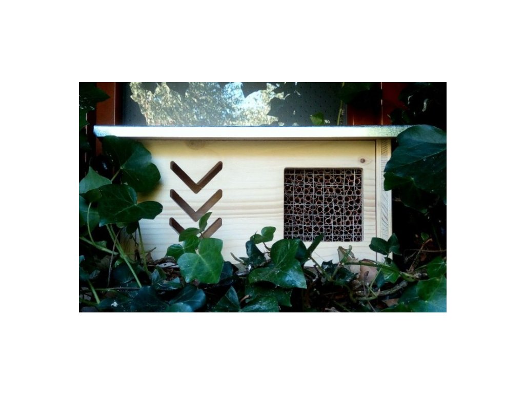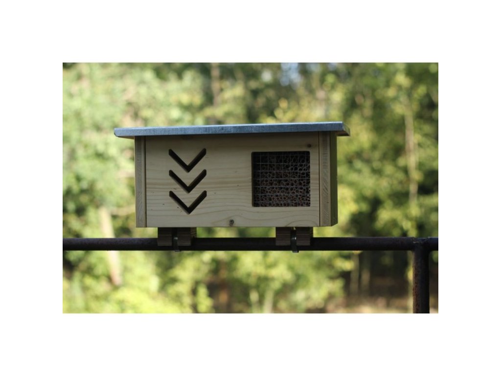 Část s mřížkou slouží včelkám samotářkám, které v dutinkách hledají úkryt i prostor pro rozmnožování. Samotářky jsou výborní opylovači a drží se v takových dutinkách po generace. Část se štěrbinami bude využita dle náplně, kterou zvolíte. Pokud necháte její vnitřní prostor prázdný, mohou jej využít například mírumilovní vosíci, pro umístění svého hnízda, pokud tam vložíte napříč jen klacík, může takový prostor sloužit jako úkryt při nepohodě pro motýly a můry. Pokud jej naplníte kůrou, štěrbiny mezi ní rádi využívají zlatoočky. Při naplnění slámou nebo senem je takový prostor atraktivní pro slunéčka. Zlatoočka i slunéčka jsou užitečnými predátory mšic.
