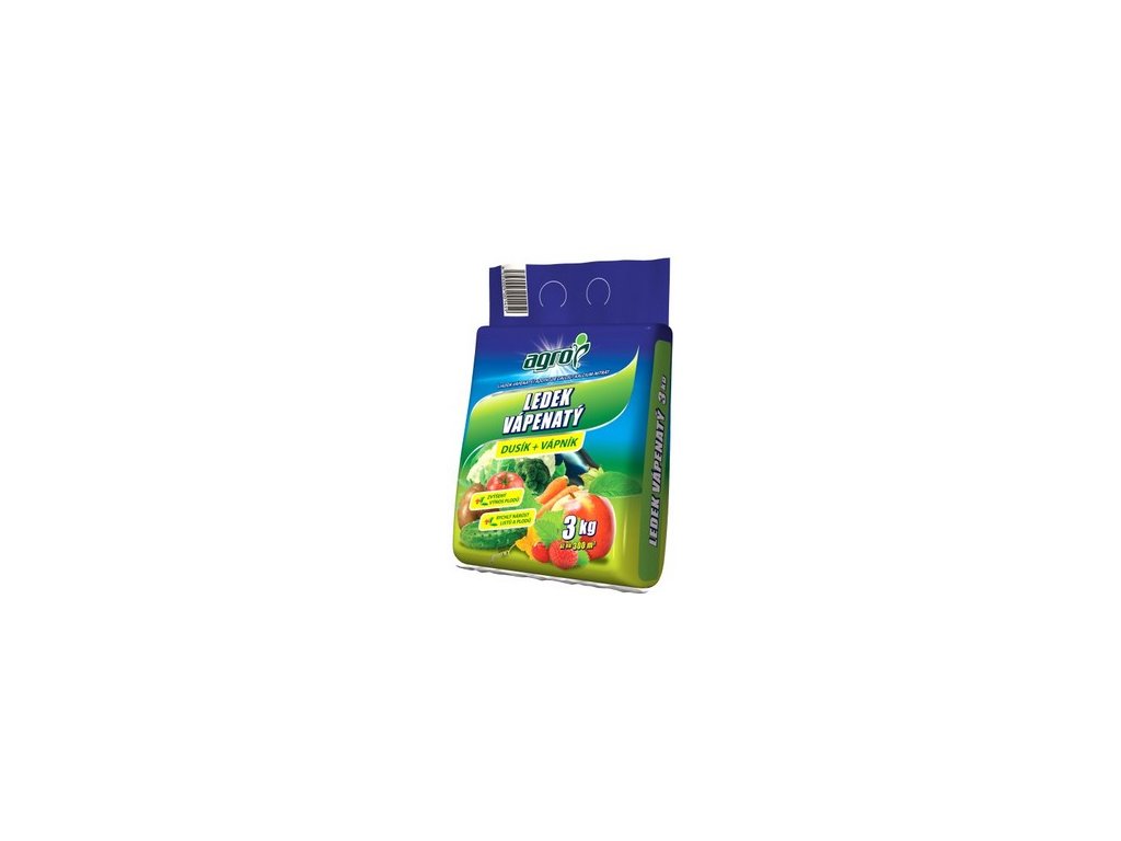 Agro Ledek vápenatý je nejrychleji působící dusíkaté hnojivo. Jeho používání je vhodné k přihnojování všech plodin a kultur s výjimkou kyselomilných rostlin (azalky, rododendrony, kanadské borůvky…). Hnojivo obsahuje vápník, který snižuje kyselost půdy. Díky svému složení výrazně zvyšuje výnosy plodů a zlepšuje jejich skladovatelnost. Používáním hnojiva urychlujeme regeneraci rostlin s poškozenou listovou plochou. dusíkaté hnojivo s obsahem dusíku (N) 15% dávkování: 3 kg hnojiva vystačí až na 300 m² dle typu rostliny Balení: 3 kg