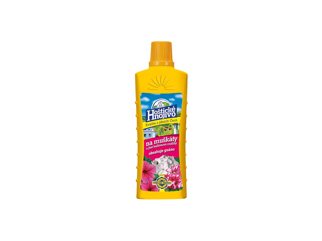 Hoštické kapalné hnojivo na muškáty a jiné balkónové rostliny s obsahem guána.