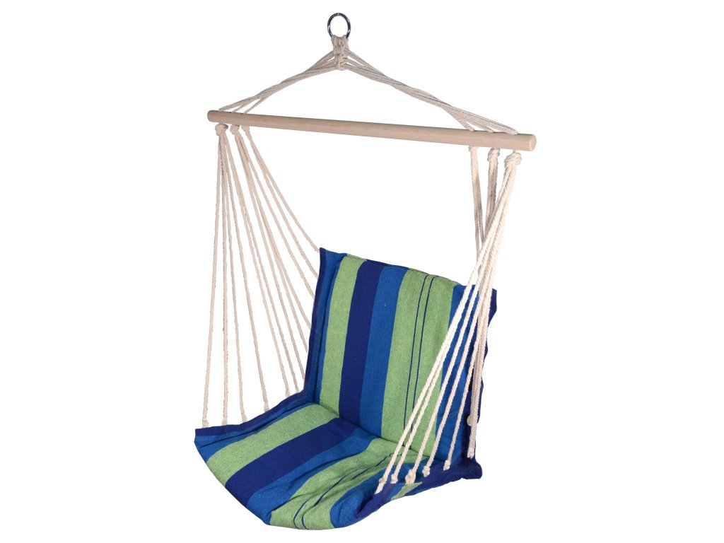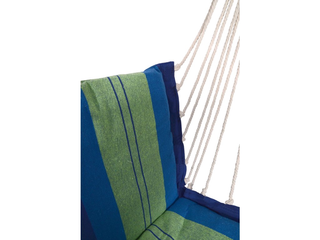 Síť je tvořena měkkým polstrovaným sedákem o rozměrech 50 x 45 cm a opěrkou s výškou 50 cm. Vysokou míru komfortu zajišťuje právě polstrování o tloušťce 3 cm, doplněné hustě tkaným, měkkým a pružným vláknem jednotlivých provazů.