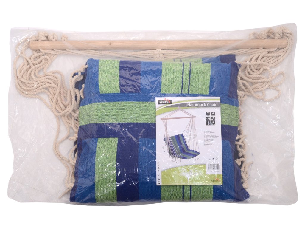 Outdoorová houpací síť k sezení, upevnitelná pomocí závěsného kroužku.
