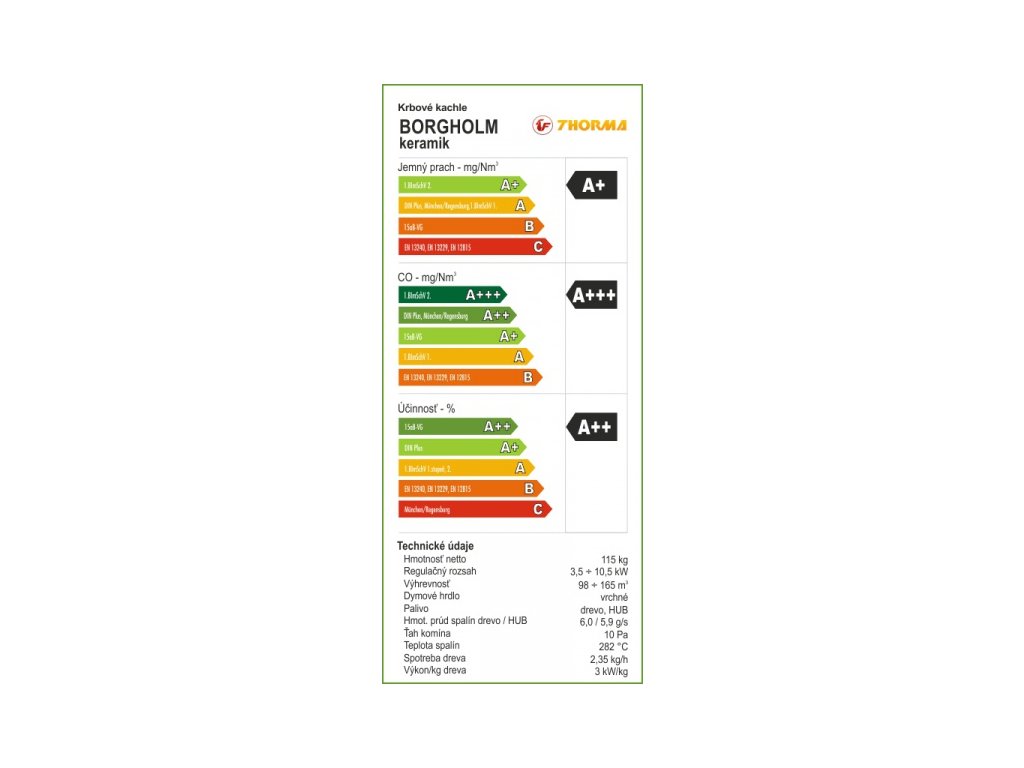 Pod topeništěm je umístěna přihrádka pro uložení dřeva. Kamna Borgholm jsou dodávána v 5 různých provedeních barev nátěru kachlí.